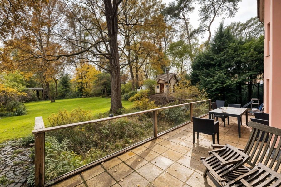 Auf einem ca. 975 m² großen, idyllisch eingewachsenen Südgrundstück präsentiert sich dieses großzügige Einfamilienhaus in einer der beliebtesten und familienfreundlichsten Lagen von Kleinmachnow. Mit rund 360 m² Wohnfläche und insgesamt 9 Wohn- und Schlafzimmern bietet das Haus außergewöhnlich viel Raum für Familien, Mehrgenerationenwohnen oder flexible Nutzungskonzepte. Dank des sinnvoll gestalteten Grundrisses lassen sich zwei separate Wohneinheiten realisieren – zusätzlich besteht die Möglichkeit, im Untergeschoss eine Einliegerwohnung oder ein Büro einzurichten, da dort bereits ein eigener Zugang vorhanden ist.