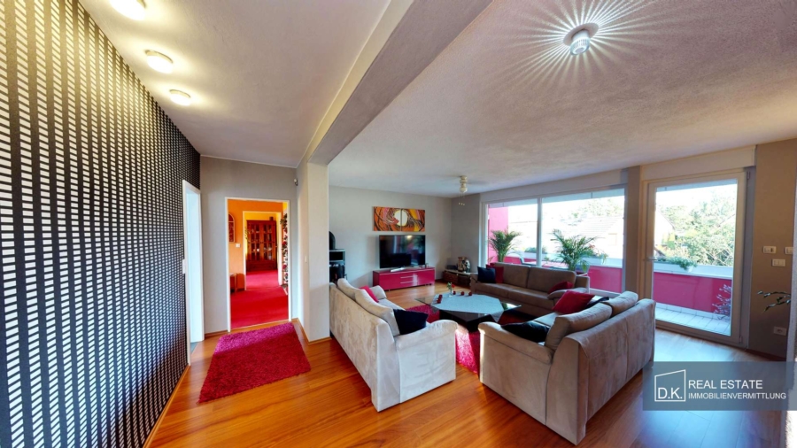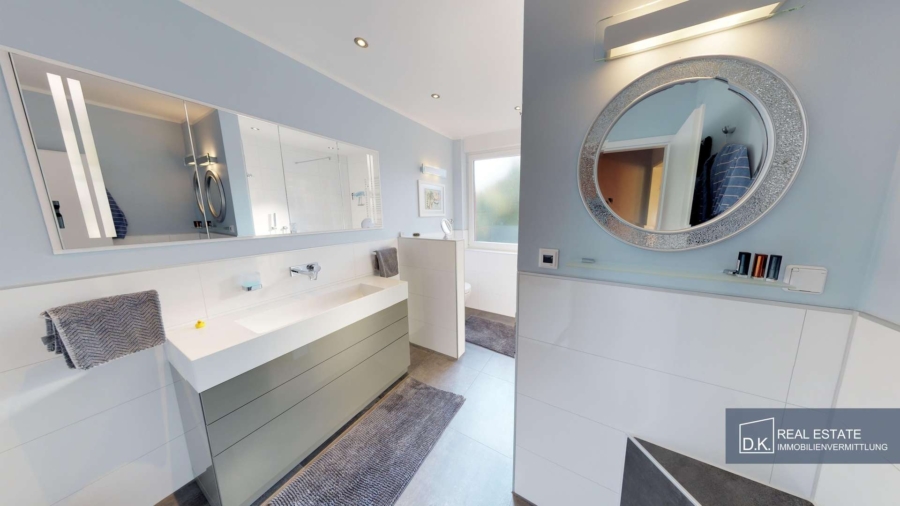 Modern durchdacht und ausgestattet ist auch das Hausinnere. Der Hauptwohnraum (das Obergeschoss) wurde liebevoll eingerichtet. Insgesamt umfasst das OG fünf Zimmer, ein Hauptbadezimmer und eine Küche sowie einen gemütlichen Balkon (12m²), welcher vom Wohn- und Schlafzimmer begehbar ist und zu entspannenden Momenten einlädt. Das Badezimmer, sowie die Küche sind modern-luxuriös ausgestattet.