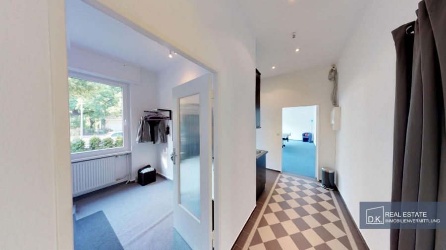 Das Wohn- und Geschäftshaus in Reinickendorf mit umgebendem Garten wurde in den 60er Jahren erbaut, wirkt aber moderner, als sein Baujahr vermuten ließe. Es besteht aus Keller-, Erd- und einem Obergeschoss, welche jeweils über separate Eingänge im Treppenhaus erreichbar sind.