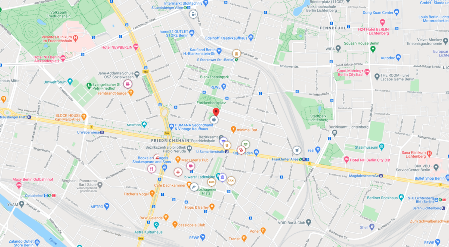 Friedrichshain gehört zu den angesagtesten Stadtteilen Berlins. Altbauten aus der Zeit des Beginns des 20. Jahrhunderts findet man hier genauso, wie vor allem an der Spree, moderne Neubauten. Friedrichshain ist ein sehr beliebt und belebter Bezirk für Jung und Alt, Singles und Familien. Alle leben hier sehr entspannt mit – und nebeneinander. Die Straße, in der sich diese Gewerbeimmobilie befindet, ist eine ruhigere Seitenstraße (30 Zone) im Boxhagener Kiez.