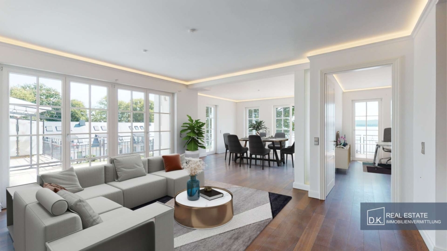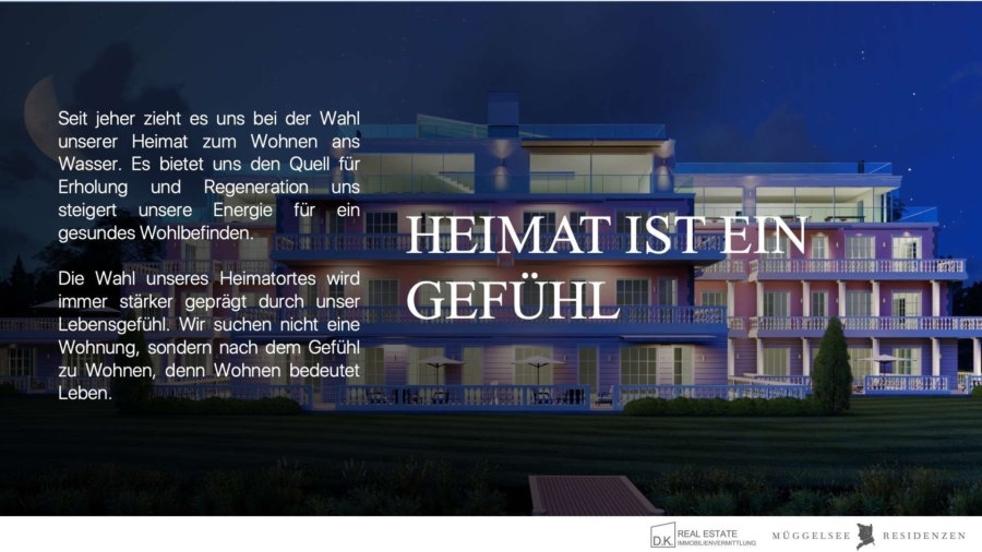 Ein exklusives Anwesen in bevorzugter Wasserlage direkt am Müggelsee. Hierbei handelt es sich um ein stilvolles, von villenartigen Gebäuden geprägtes Wohnensemble der Müggelsee Residenzen Berlin. Auf dem besonderen Grundstück wurde dieses Wohnensemble mit einem Palais, vier Seehäuser, einem Penthouse und 56 hochwertigen Eigentumswohnungen in sechs Gebäuden, ein Concierge-Haus, ein Parkhaus und eine eigene Steganlage für Segel- und Sportboote errichtet.