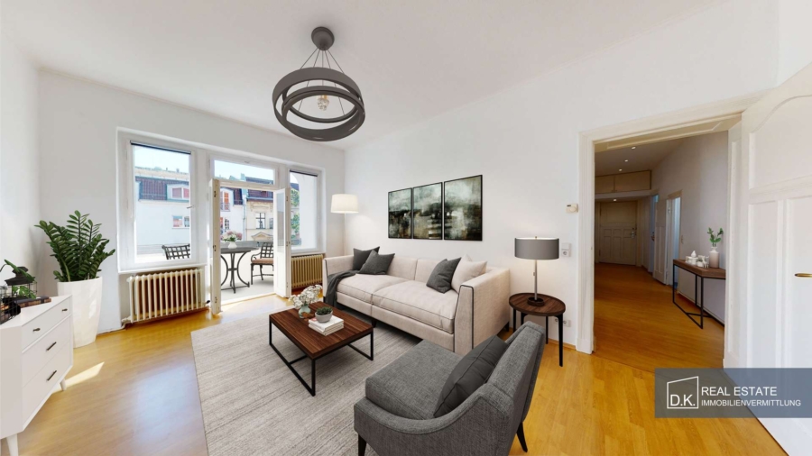 Im dritten Obergeschoss dieses 1919 errichteten Mehrfamilienhauses präsentiert sich diese von idealen Lichtverhältnissen geprägte Zwei-Zimmer-Wohnung auf insgesamt ca. 70 m² Wohnfläche. Die Eigentumswohnung überzeugt mit einem angenehmen und praktischen Schnitt sowie einem geräumigen Balkon.